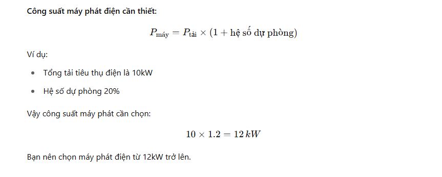 Công Thức Ước Tính Máy Phát Điện Theo Công Suất Tiêu Thụ